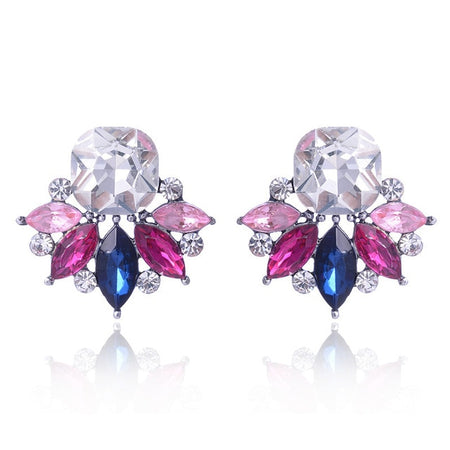 LUBOV Beautiful Multiple Colors Crystal Flower Stud Earrings Rhinestone Colorful Crystal Piercing Earrings Women Christmas Party